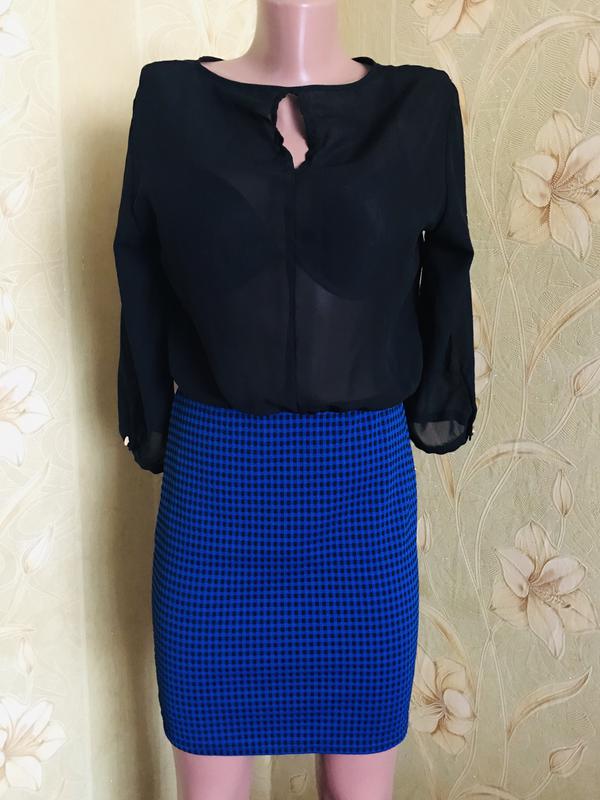 Черно-синее платье размер 46, вверх шифон,снизу юбка-резинка(без затяжек),единственное есть потертости на пуговицах.