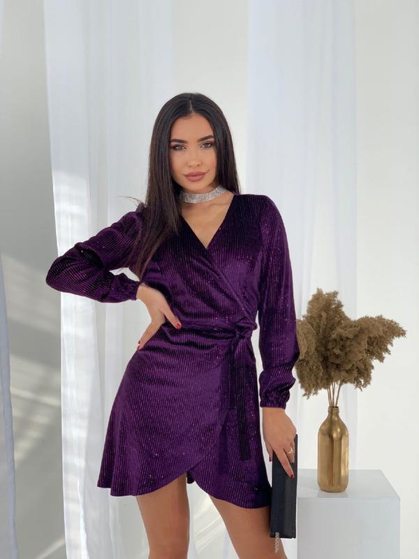 🔥Мега крутая новинка🔥 ❣В наличии ❣ Платье Мод 100 Ткань дорогой велюр с напылением Размеры 42-44, 46-48, 50-52 Длина 42-44 85 см, на след размер + 3 см. Платье на запах выполнено из дорогого велюра, рукава на резиночке 2 см. Фото Реал 👌Качество 💣 Цвет чёрный, фиолет,электрик ts32