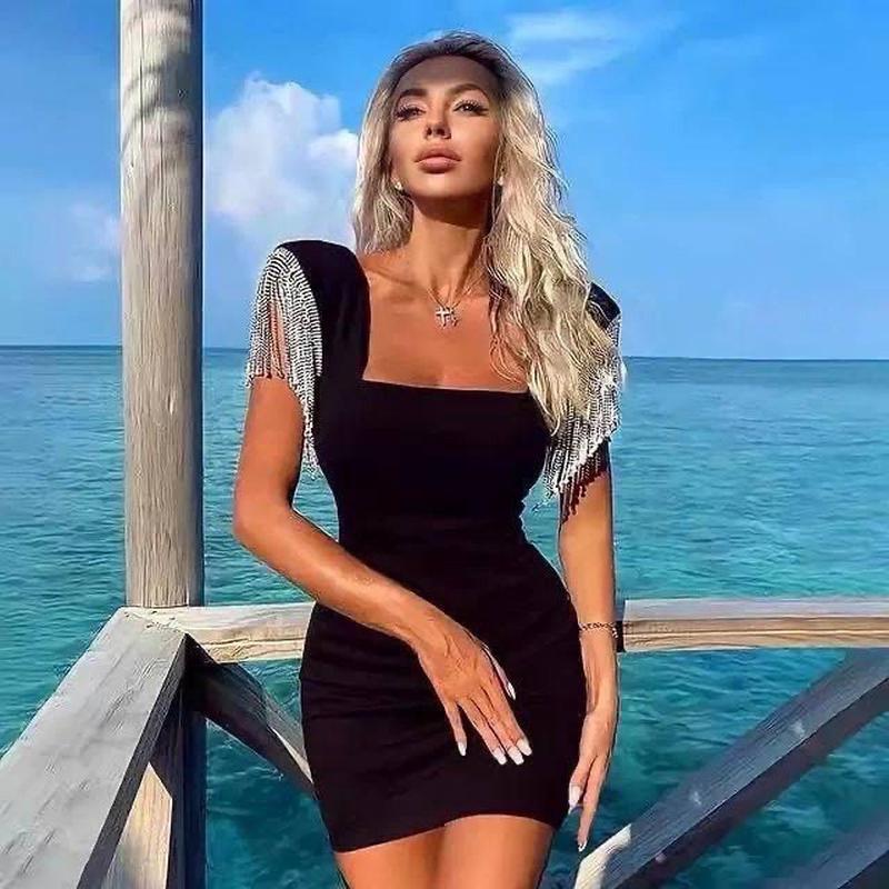 ⭐⭐⭐НОВИНКА⭐⭐⭐ Плаття мод 412 mlm Розмір: 42-44 46-48 Виміри: 42-44 ОГ 86 см/ ВІД 66 см/ ПРО 88 см 46-48 ОГ 92 см/ 72 см/ ПРО 94 см Довжина виробу 88 см Тканина добре тягнеться і відмінно сідає по фігурі. Є підплічники. Ідеальне маленьке чорне плаття зробить Ваш образ чарівним!!! Тканина: італійський трикотаж Колір: чорний, бахрома срібло Відмінної якості!!📮