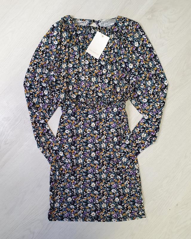 Платье с принтом, открытой спинкой, круглым воротником и длинными рукавами. Имеет сборки на воротнике, эластичный пояс и подкладку. Ткань с легким эластичным эффектом. За счёт этого фигура в нем выглядит 🔥 особенно попа ,как 🥜🤤 Размер Xs,S
