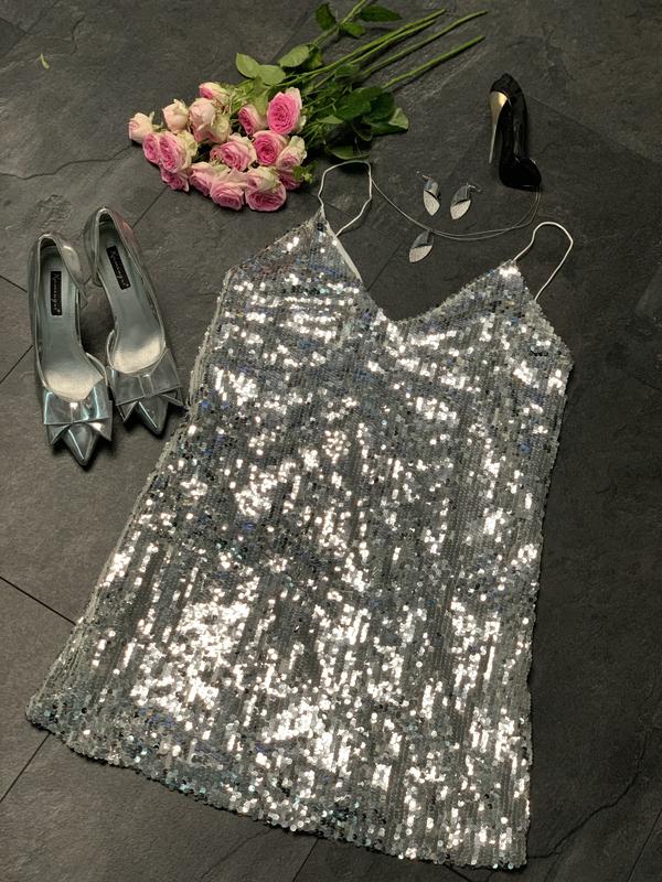 Блестящее платье в пайетках ПОГ - 40-45 см Длина с бретелями - 80 см