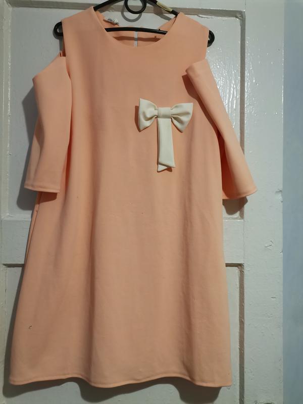 Интересное платье свободного кроя, с открытыми плечами. На бирочке размер L, а на самом деле до 50 Имеет пару затяжек