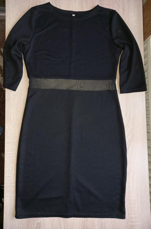 Трикотажне чорне плаття, без бірки, не ношене, пролежало в шкафу. Буде на 46-48 розмір. На талії по всій ширині сіточка. Перше значення в спокійному стані, друге - на скільки тягнеться: Пог 43-51 см + Пот 38-43 см Поб 47-55 см