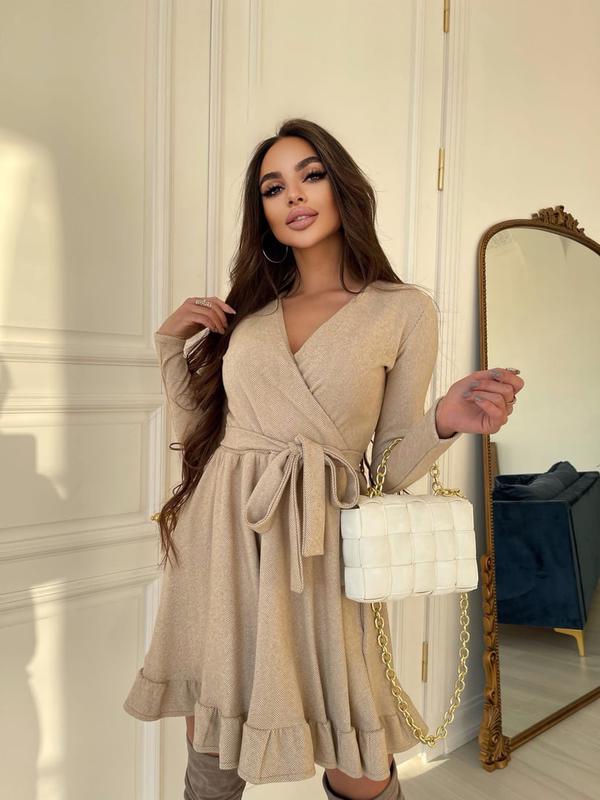 Платье имитация запах Відеообзор на інстаграм-сторінці♥️ арт. *** 306 Ткань: мягкий кашемир ёлочка (не колется) Цвет: пудра, песок, мокко Размер: С-М Л-ХЛ По бокам карманы. Отличное качество, фото реал.