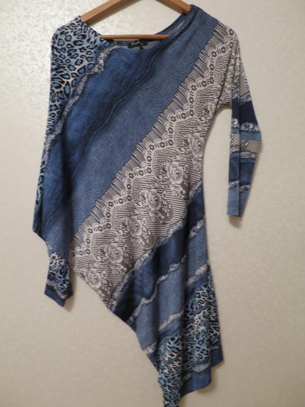 Оригинальное стрейчевое платье с одним открытым плечем. Разм. 46-48.