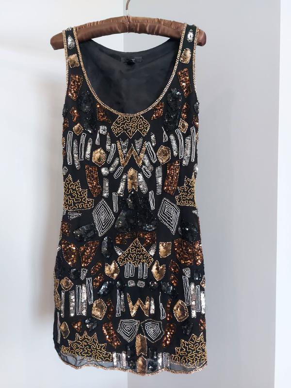 Праздничное платье Маngo, завораживающее с первого взгляда. Основной цвет – черный. Вышивка сделана в абстрактном стиле. Цвет вышивки – серебристый, золотистый, бронзовый и черный. Вышиты нитями, стеклярусом, бисером и пайетками. Верх – вискоза, подкрадка – полиэстер. Размер S. Имеет удобную потайную молнию сбоку и карманы. В идеальном состоянии, вышивка цела, повреждений нет. Удобно в ношении, выглядит потрясающе! Можно дополнить туфлями, которые будут идеально подходить к платью (см. другие мои объявления)