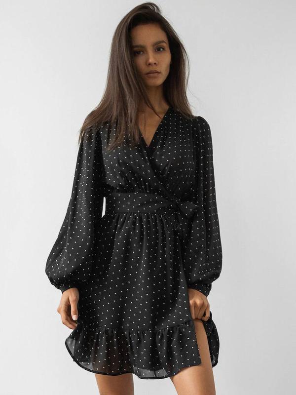 Платье Мод. 213АТ Ткань: Штапель Цвет: черный, белый Размеры: 42-46 Принт горох, легкое, воздушное, стильное