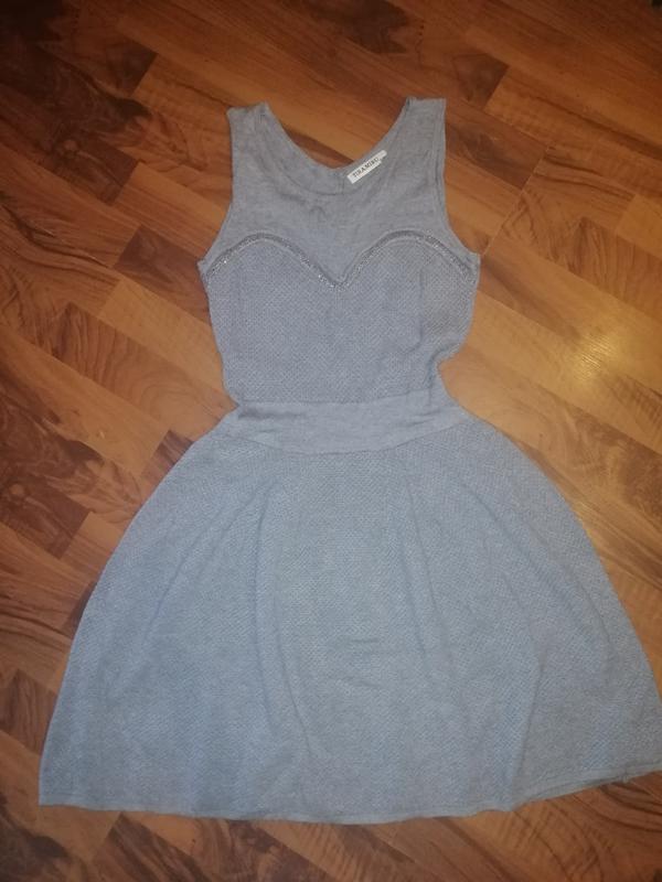 Шыкарное сукню в сірому кольорі з блискучими камінчиками на грудях
