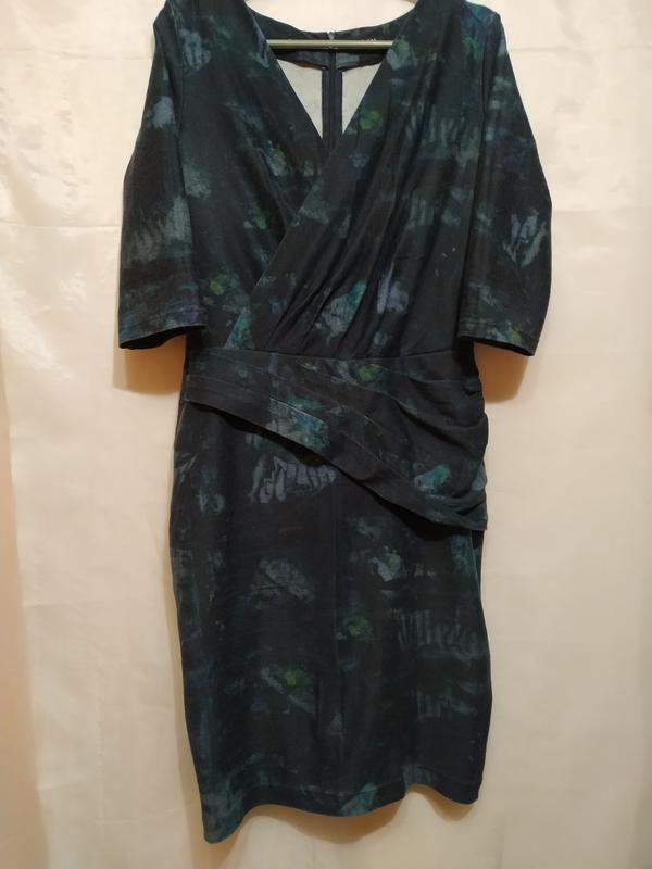 Интереное платье садится по фигуре, декольте выполнено на запах. Замок - потайная молния на спине. Рукав до локтя. Состав : 70% - хлопок, 25% - полиэстер, 5% - эластан
