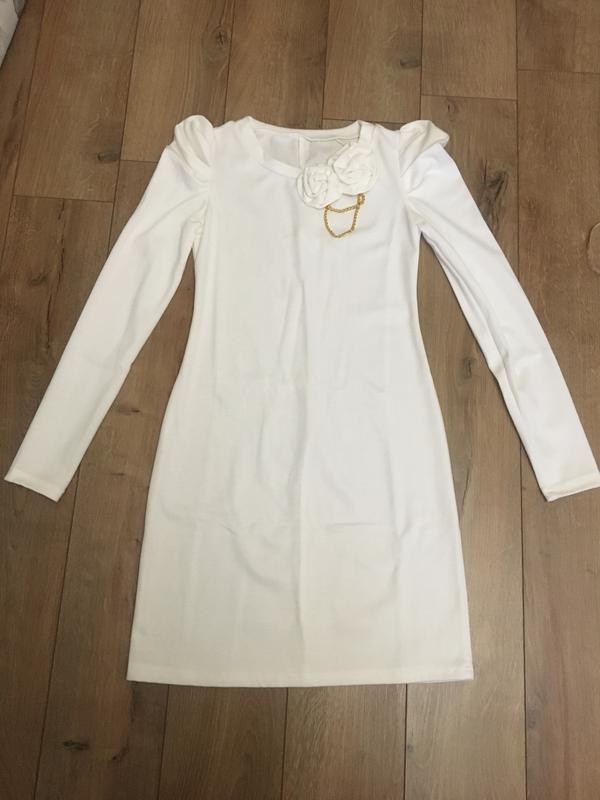 Гарне плаття молочного кольору з актуальними рукавами «ліхтариком». Нове! Гарно лягає по фігурі. Прекрасно підійде для будь-якої події!