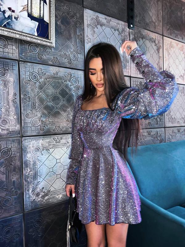 Bestseller 💫💫💫 Платье-хит,пышные рукава, сборка в зоне декольте, идеальная посадка по талии, пышная юбка и это все в любимой новогодней ткани с напылением, которое играет всеми цветами радуги и доставляет эстетическое удовольствие ❤️ Размер с(42-44),м(44-46) 💥Цена 884грн #платье #юбка