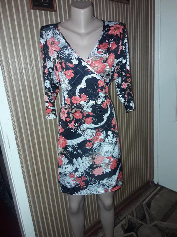 Сукня яскрава. Ложится по телу облегая. Стан нового. Размер 44-46, регулируется завязками. Заміри на фото.