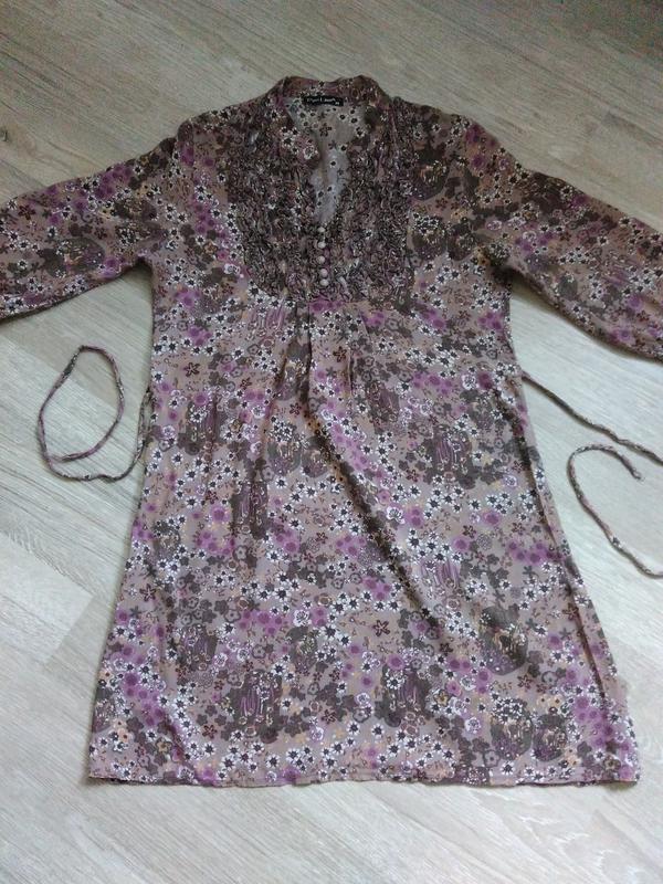 Туника ситцевая. очень удобная. Красиво смотрится. Подойдет для размеров от с до л. Замеры: длина-88, пог-47, плечи-39, рукав 3/4- 49