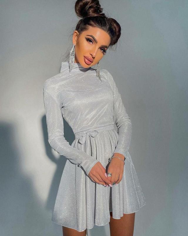 🆕🆕💫New Collection! 💫🆕🆕 Мод. 2177 Блискуче плаття з розкльошеною спідницею і високим коміром. ✔Розмір - 42-44, 44-46 ✔Тканина - Люрекс 🔝🔝🔝Якість LUX!!!🔝🔝🔝 💎💎💎 💎💎