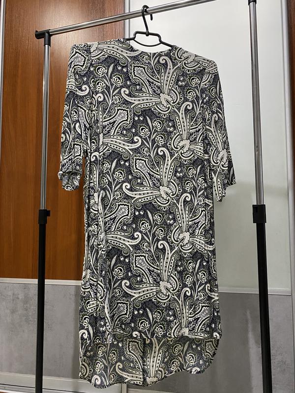 Стан 10/10 Дуже просте але дуже красива моделька, на спинці замочок. Ззаді подожений низ. Плечі 40см Д рук 40см (3/4 рукав) Довжина перед 85см/довж ззаді 105см Погруд 48см Победр 55 см