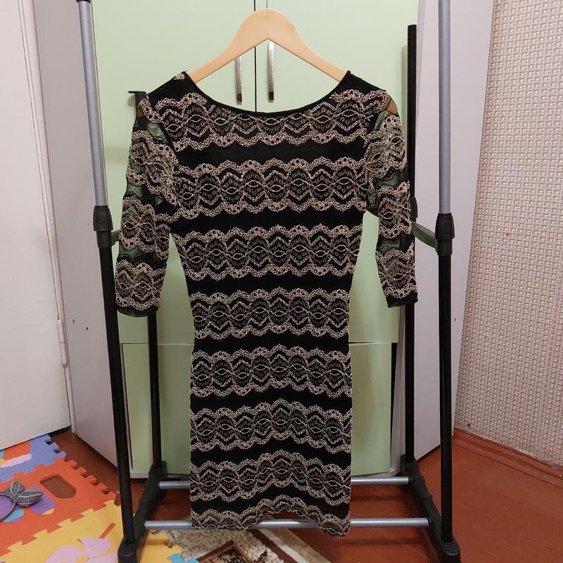 Прекрасное платья, с подкладкой. Красиво открыта спинка, рукав в сетку. Облягающее, очень красиво подчёркивает фигуру. Длинна платья 81см, длинна рукава 39 см. Платья тянется. Пол/обхват груди 43см - тянется до 49см. Пол/обхват талии 33 см - тянется до 39 см. Пол/обхват бёдер 42см -тянется до 49см.