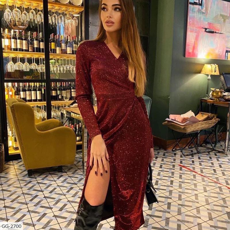 Ткань: мерцающий люрекс Фасон платья с запахом очень удобен, так как оно будет безупречно смотреться на любой фигурке!
