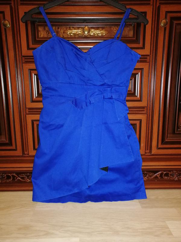 Платье нарядное ярко-синее. Цвет как на 2 фото. Верх и подкладка- 96%коттон, 4% эластан. Плотное. Верх- корсет, на косточках. регулируется лямками. Бантик на талии легко убирается, если нужно. Застежка на змейке. Замеры: Длина - 75 см Обхват груди - 82 см Талия - 64-66 см
