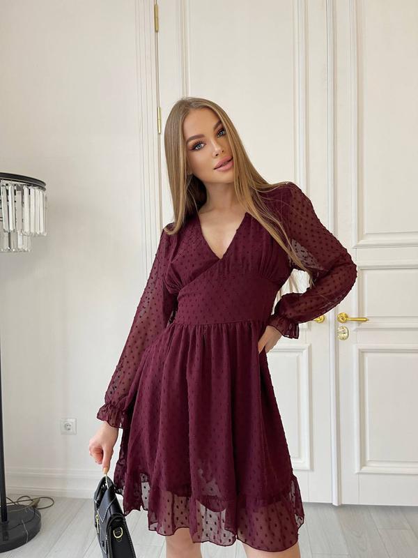 Сукня в дрібний горошок з акцентом на талію😍🔥 Мод:853 Тканина: шифон на підкладці Розмір: універсал 42-44 Колір: смарагд,бордо,чорний Модель 170см Ціна 680 грн