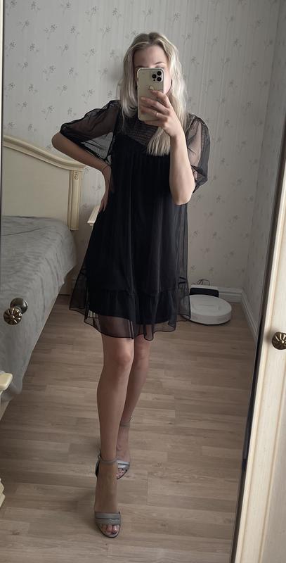 Воздушное платье в стиле кэжуал А-образный силуэт. Нежное нижнее платье на бретелях 100% полиэстер ( переработанный ).Короткие пышные рукава и воротник с оборкой. Производитель : H&M (отсутствуют бумажные магазинные этикетки , вещь сток - новая одежда из Европы. Не секонд ,запах нового ). размер М плечи 32 см ,полуобхват груди 51 см ( по верхнему платью , оно сидит свободно ) , длина 83 см . На такие параметры : ОГ 84-88см, ОТ 68-72 см, ОБ 92-96см