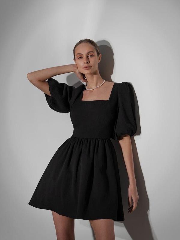 Платье🤩 Модель 062 mich Размер: 42-44, 46-48 Цвет: чёрный Ткань: креп дайвинг Цена 620 грн 🌿Платье с открытой спиной - это всегда «вау». Согласны?❤️ Мы знаем как усилить эффект : пышные рукава + шнуровка на спине создают выразительный контраст.🌿