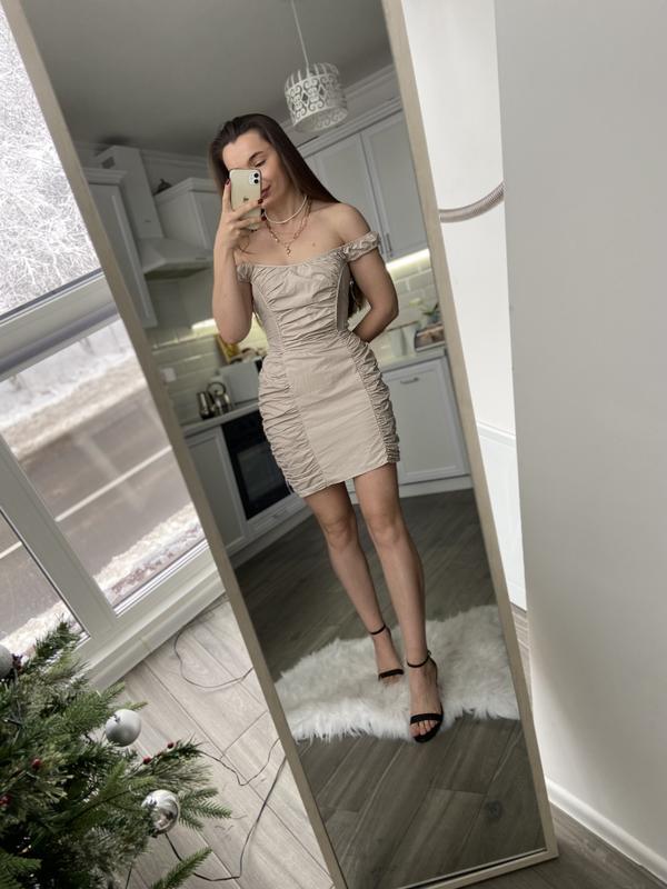 Модное, очень актуальное нюдовое платье. Очень красиво смотрится на загорелой коже. Есть металические вставки на талии, которые держат платья. Плечи приспущены, это делает платье очень соблазнительным. Новое, с этикеткой.