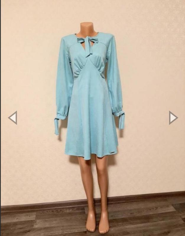 🌹Плаття ДЕЙЗІ замша Склад: замша (40% бавовна, 60% поліестер) Еластичність: середня Розмір: M Ось заміри(виміри вказані в спокійному стані-тканина тягнеться): Напівобхват грудей-45см(в розтягнутому стані 53см) Напівобхват талії - 36см, Довжина рукава(рукав реглан) (від шиї до кінця рукава)-66см Довжина виробу-94см Це сукня може бути як ошатним,так і повсякденним. Виріб відрізна по талії. Область грудей, по обидві сторони від планки, прикрашають складочки. Міні спідниця фасону полусолнце вільно сидить по фігурі. Для пошиття моделі була обібрана замша. Тканина відрізняється особливою м'яка якістю і невеликим ворсом на лицьовому боці. Замша чудово поводиться в шкарпетці: не мнеться, не линяє, не сідає і не стирається. Колір: Блакитний
