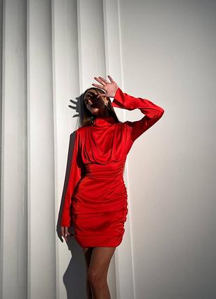 Milir Арт 361 Платье Elizabeth Сдержанное , сенсуальное и эффектное ! Платье мини с рукавами , драпированное Застегивается потайной молнией по спинке Ткань : шёлк Подкладка: трикотаж Размер :XS/S, S/M, M/L