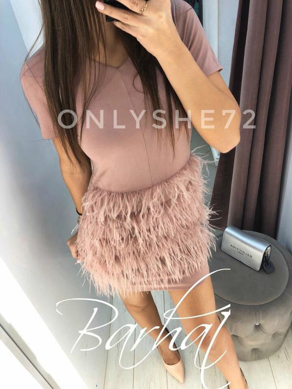 ВНИМАНИЕ! Цена СНИЖЕНА! Платье ✔Ткань - Креп Костюмка Барби Декорировано перьями Пудра 44-46 Отменное КАЧЕСТВО! Цена 490 грн