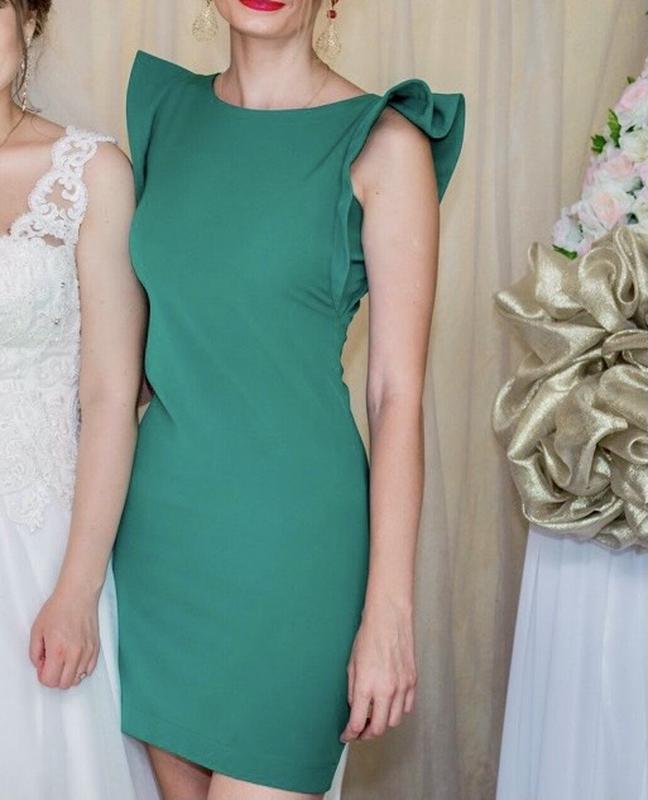 Стильное и милое платье зелёного цвета. Ткань немного тянется, хотя плотная, приятное к телу. Отлично подойдёт на любое торжество! Надето на рост 169 см, бюст 89, талия 59, бедра 89 см.