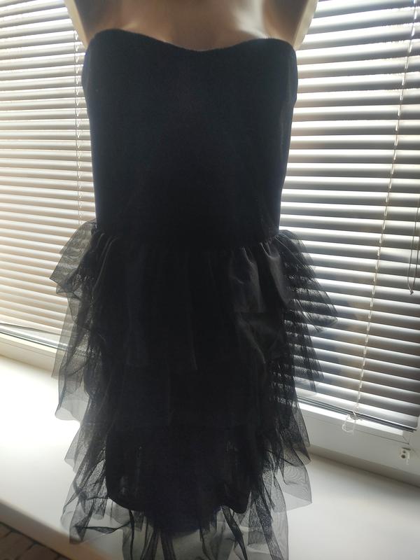 Сукня у відмінному стані,верх з оксамиту,низ волани з фатину,є петлі для бретелей,довжина 72см ,побх 43см,пот31см,спідниця на підкладці.