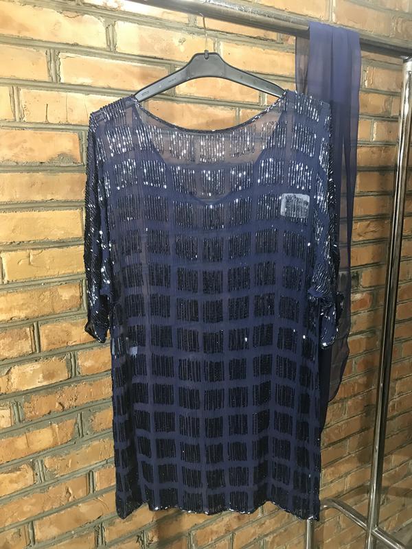 Платье туника из натурального шёлка всё расшито бисером глубокого синего цвета Платье полностью расшито бисером, Ткань в один слой без подклада ( подразумевает под платье сексуальную шёлковую комбинацию чёрного цвета). Рукава отрезной 3/4 Впереди треугольный вырез с закруглённым углом. Шёлковый пояс- шарф с бисерным шариком и висюльками на окончаниях. Бисер пришит зональными квадратами и таким образом, что платье всё время переливается как чешуя сказочной рыбы. Платье тяжёлое из-за количества бисера В единственном экземпляре Из личной коллекции 3650 грн. или 100 Евро на карту Моно Банка Внимание ☝️ Стирать только в режиме РУЧНАЯ СТИРКА Стирать только в специальной сетке, для деликатного белья. Стирать только порошком. Гели для стирки НЕТ 👎 Смягчители ткани НЕТ 👎 Ополаскиватель НЕТ 👎 ☝️Реальный цвет может немного отличаться от фото! 📝 Замеры: ПОП - 48 см Ширина проймы - 24 см Длинна рукава - 45 см ПОГ - 51 см ПОТ - 49 см Ширина низа - 51 см Длинна по спинке - 82 см Пояс Длинна - 2 м Ширина - 25 см Желаю всем здоровья и процветания ! Приятных покупок!)))