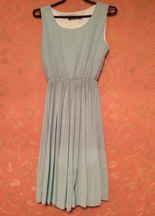 Платье нарядное бирюзовое плиссе