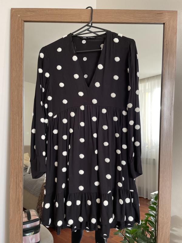 Полуохват Ог 44 Длина рукава 57 Длина платья 83 Талии не имеет в качестве такого, потому что платье свободного кроя и немного оверсайз