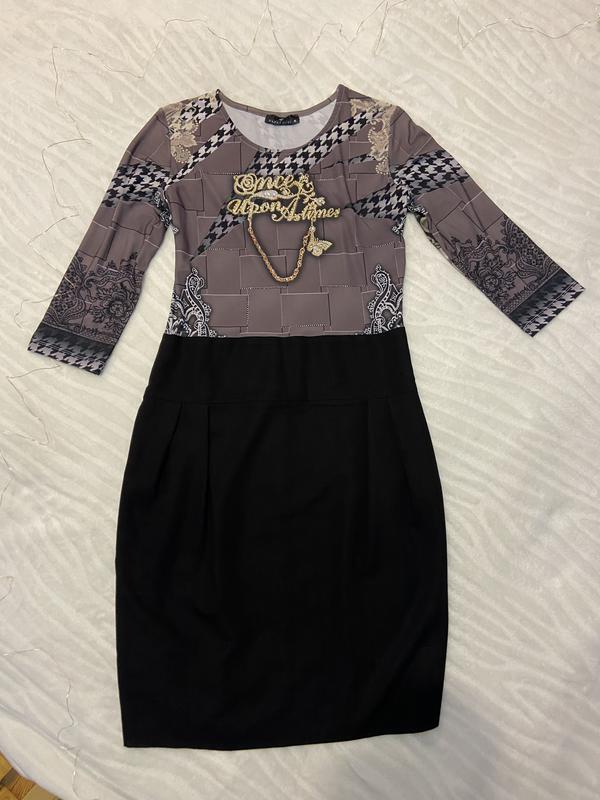 Приятное к телу платье. Верх платья хорошо тянется. Талия завышена. Идёт на размер m-l. Сбоку на потайной молнии.