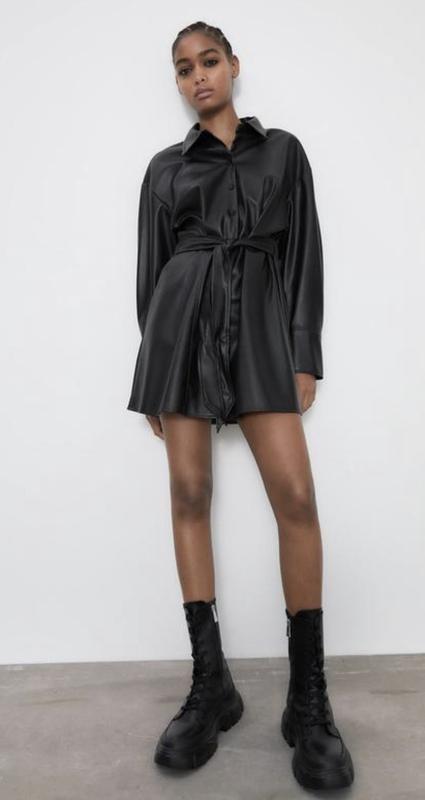 Нова сукня Zara, чорна шкіряна, розмір XS (можна на S/M) Заміри: дoвжина 82см/ півоб‘єм грудей 45см/ півоб’єм талії 35 см і до 40см / півоб’єм бедра 54см/ рукав від шиї 70 см