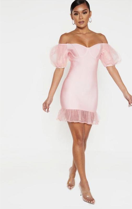 Чарівна бандажна сукня з шифоновими рукавчиками Розмір 10/М Довж.по спинці 57,5см (з рюшками 69,5см) Пог 39см, пот 34см, поб 41,5см Тканина еластична, тягнеться