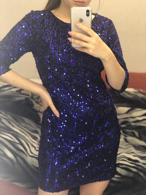 Платье в паетку синее