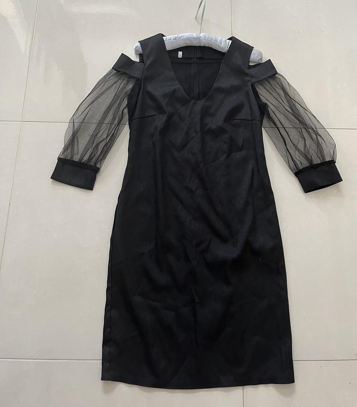 Чорна сукня з сріблястим відблиском та голими плечима і сіткою)