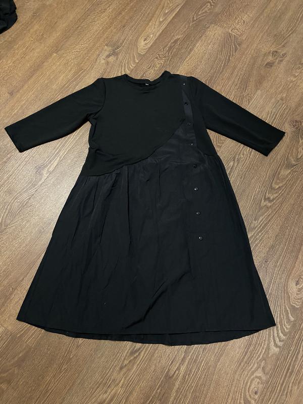 Платье с рюшой короткое с пуговицами Размеры в наличии С, М, Л, ХЛ Цвета в наличии темно синий, чёрный Состав 95% хлопок, 5% эластан