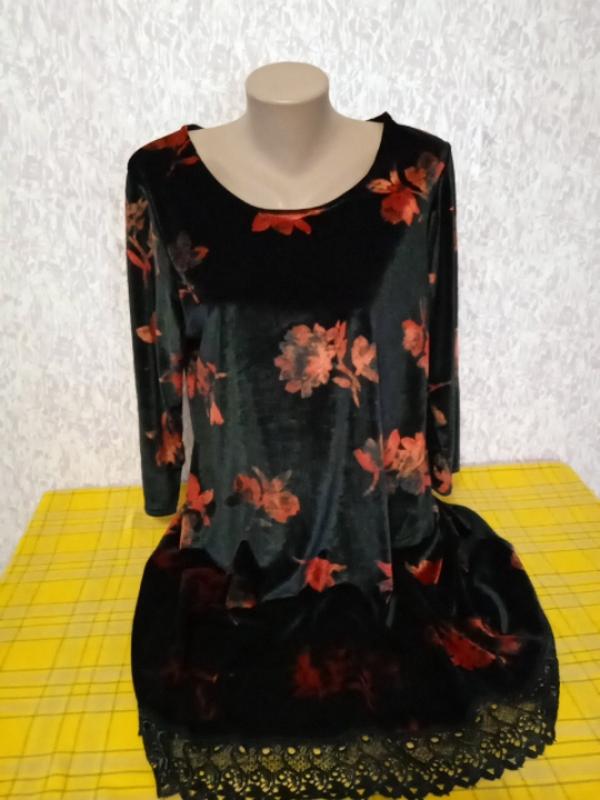 ошатне велюрову сукню з декольте довжина виробу 95 см укорочені рукава-46 см груди-54 см покрій трапецієподібний