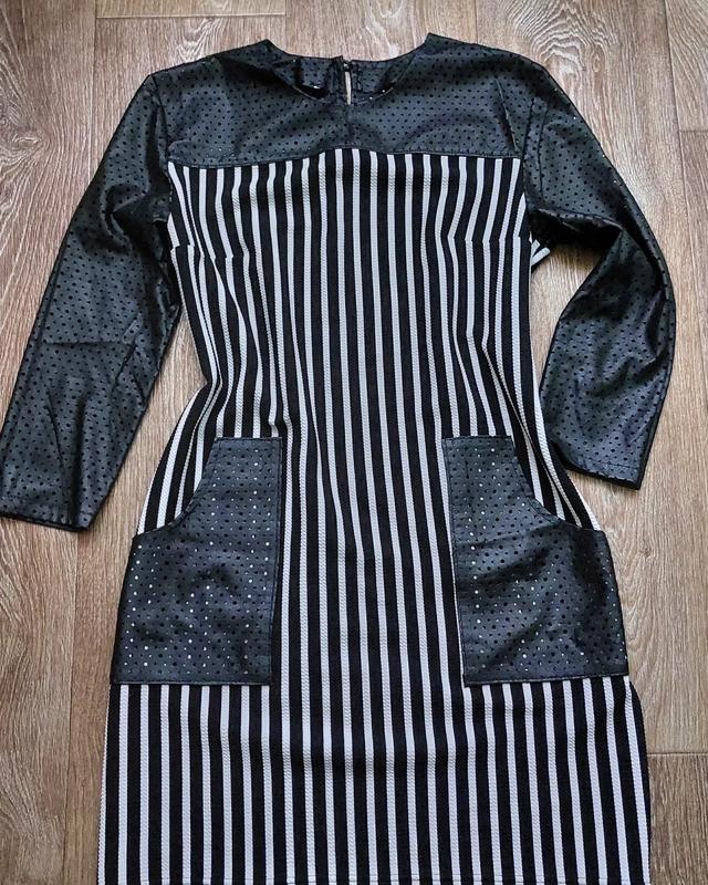 Классное стрейчевое платье с вставками эко-кожи.