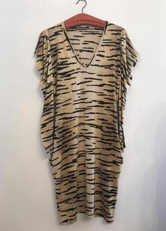 Стильное платье извесного бренда. Состояние идеальное, без дефектов. Натуральный материал,непросвечиваеться,без подкладки. Красивые драпирующиеся рукава,красиво ниспадают . Размер указан 40,все бирки есть. Есть 2 боковых кармана. Можно использовать самостоятельно,можно под пояс. Меряйтесь по замерам указанных в описании. Материал ещё тянется хорошо. Длинна 99 Плечи 36 Рукав60 Пог от47 до 67 Пот от45 до 65 Поб от50 до 75