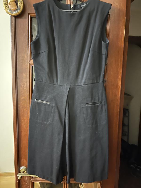 Платье Mango, размер L, маломерит, реально на М. На подкладке. Плечи 40 см, ПОГ 43 см, ПОТ 38 см, ПОБ 56 см, длина до талии 39 см, общая длина 90 см. Дефектов нет. Одето пару раз. Цвет очень чёрный, как на 4 фото.
