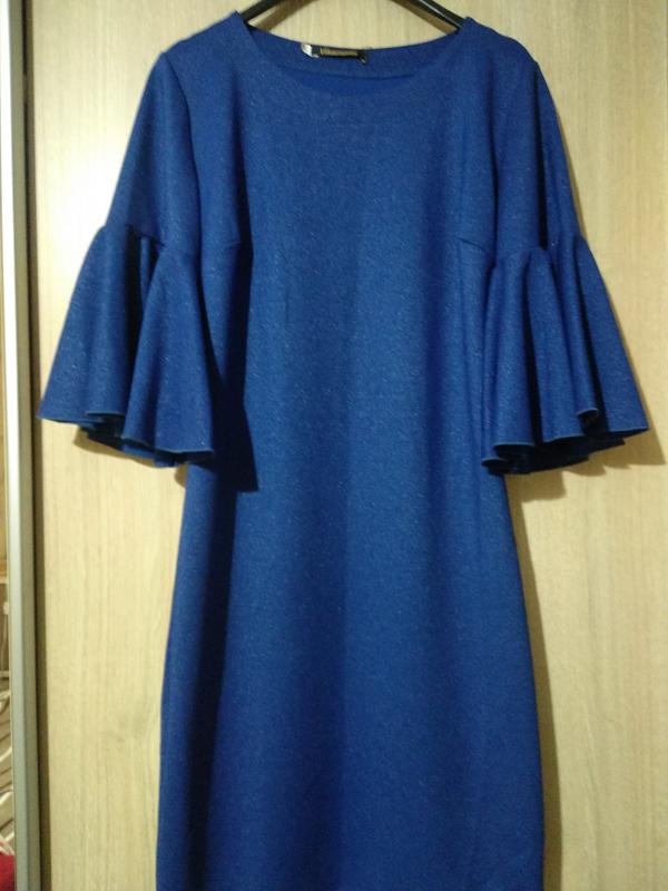 сукня кольору електрик тканина металік рукав 3/4 з воланом розмір М, але піде на З тканина 70 котре, 30 поліестер