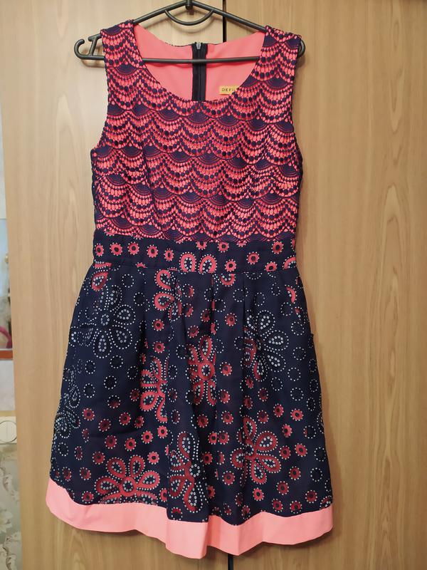 Состояние отличное, одевалось один раз. Платье без рукавов, сверху с плотным кружевом, подклад ярко розового цвета, кружево синее, молния на спине, размер 38 длина 86, полуобхват талии 37, полуобхват груди 44