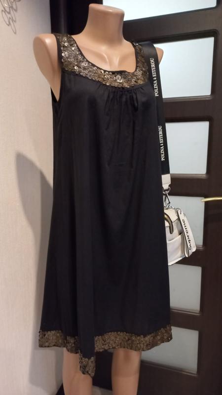 в отличном состоянии без дефектов и изъянов хорошо сидит по фигуре станет незаменимой вещью в Вашем гардеробе очень качественная ткань и отделка ткань очень мягкая тонкая лёгкая приятная на ощупь и к телу не просвечивается не тянется! цвет просто черный,шикарная отделка из металлических пайеток,довольно тяжеленькое модель платья без подкладки без карманов без застежки просто так надевается силуэт трапеция длина чуть выше колена следы носки минимальны практически не носили отдельных нюансов нет кому подойдет не пожалеете прослужит Вам долгие годы хорошо сочетается с любыми вещами и аксессуарами состав и брэнд смотрите на бирке размер заявлен 34/36 или подойдет даже на М,в любом случае смотрите сами по замерам кому как сядет и нравится фото на теле не делаю это не мой размер а подходящей модели нет длина изделия 90 поб 62 пог 46 ткань не тянется очень качественная и крутая вещь замеры точные проверяйте внимательно
