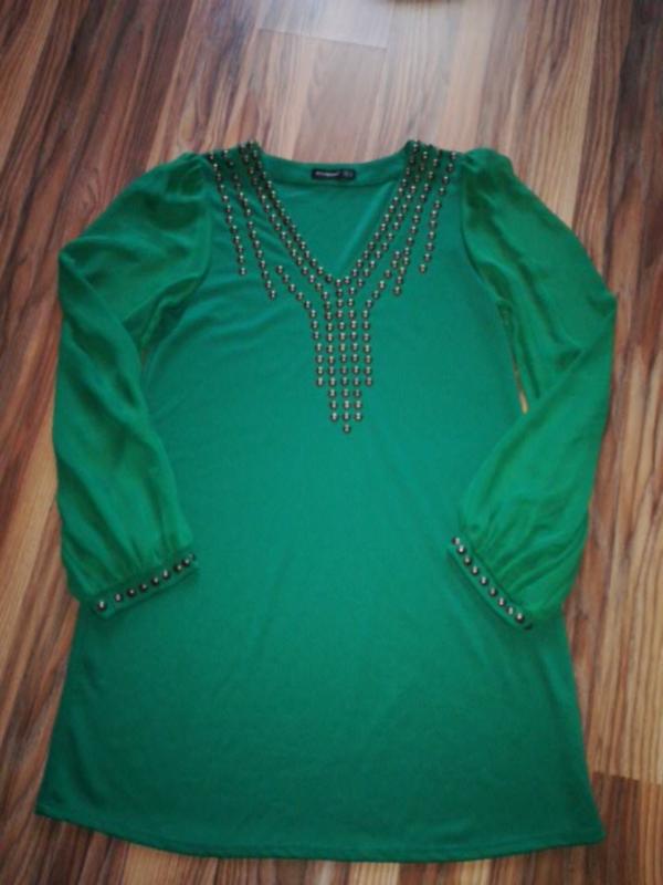 Состояние очень хорошее. Рукава шифоновые. Ткань на платье слегка тянется. Длинна 84 см, длинна рукава от плеча 65 см, по плечам 35 см, под руками 46 см, по бёдрам 55 см. На рукаве есть маленькая зацепка на последнем фото. Пересылаю.