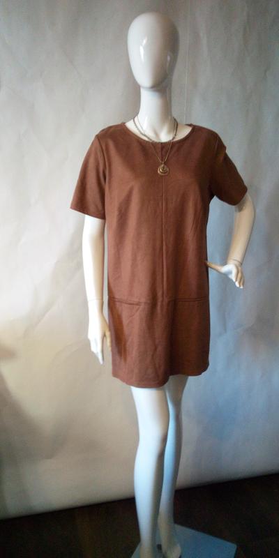 Коричневое платье с коротким рукавом сэфектом замши,карманы декор,сзади трикотаж,прямого силуэта состав ,,,,полиэстер,эластан стрейч,приятная на ощупь,мягкая написан размер UK -16. EUR-44. US -12 46/M. 48/L 50/L. замеры ПОГ -52 тянется до 55см ПОТ-50см --------53см ПОБ 52см тянется до 55см рукав 25см длина платья 84см Состояние отличное 😍👍👍👍👍👍👍 Сток!!!