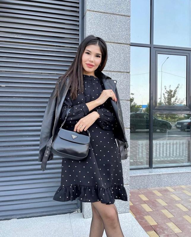Модель 447 платье Женское платье Размерный ряд S,M,L,XL Материал костюмный креп Модель свободного кроя,с длинным рукавом, манжет на пуговице Воротник стоечка, планка по полочке застёгивается на пуговки Низ изделия декорировано рюшем Можно носить под поясок В комплекте пояса нет Супер качество (с1498)